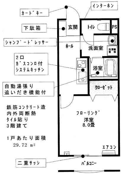 光インターネット対応,玄関ドアカードキー,二重サッシ,屋根付駐輪場、火災報知器